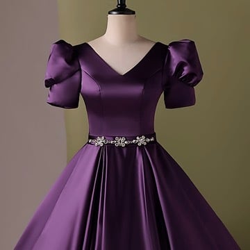Vネック ウエストビジュー ロングドレスR 1540