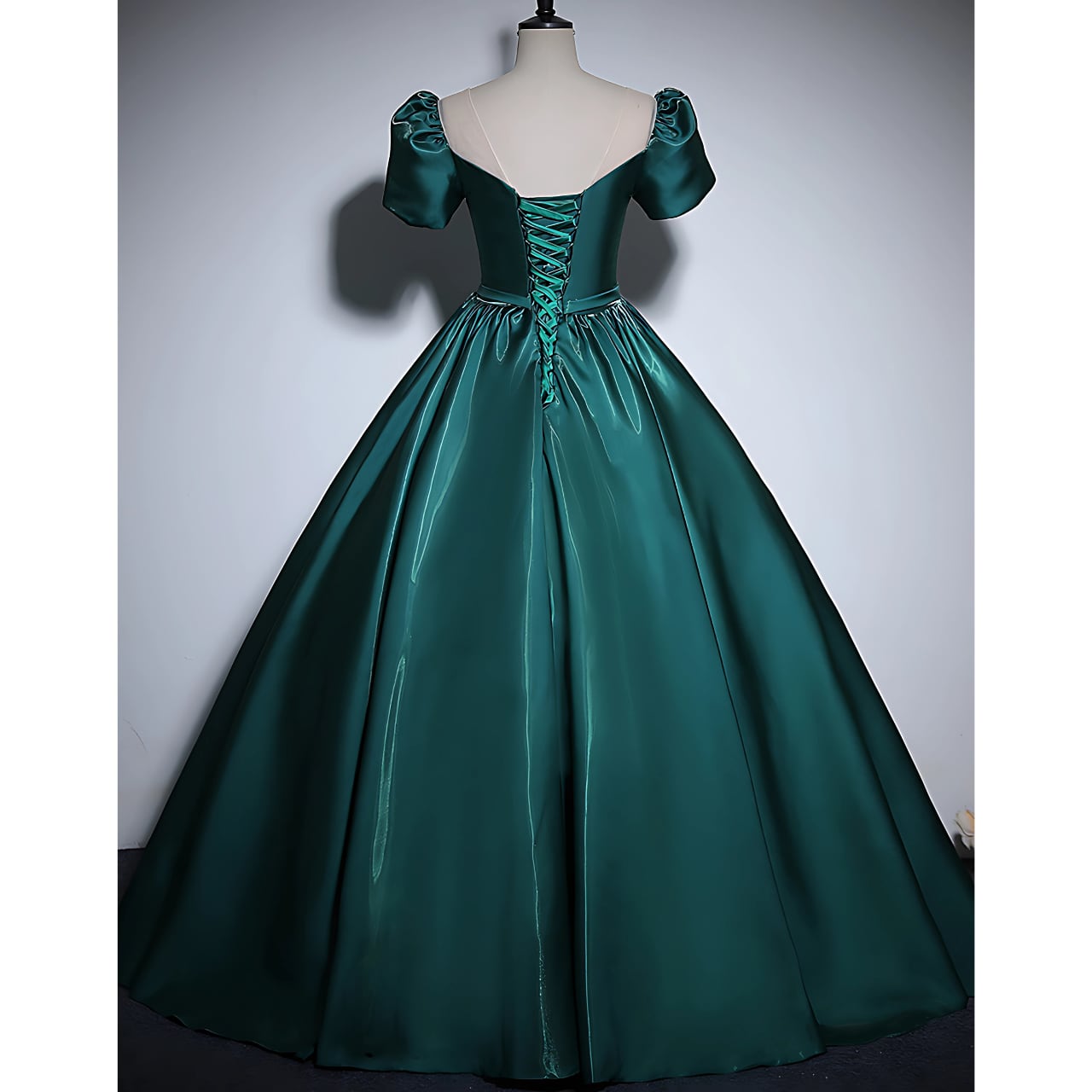 サテンパフスリーブ グリーンドレスR 1549