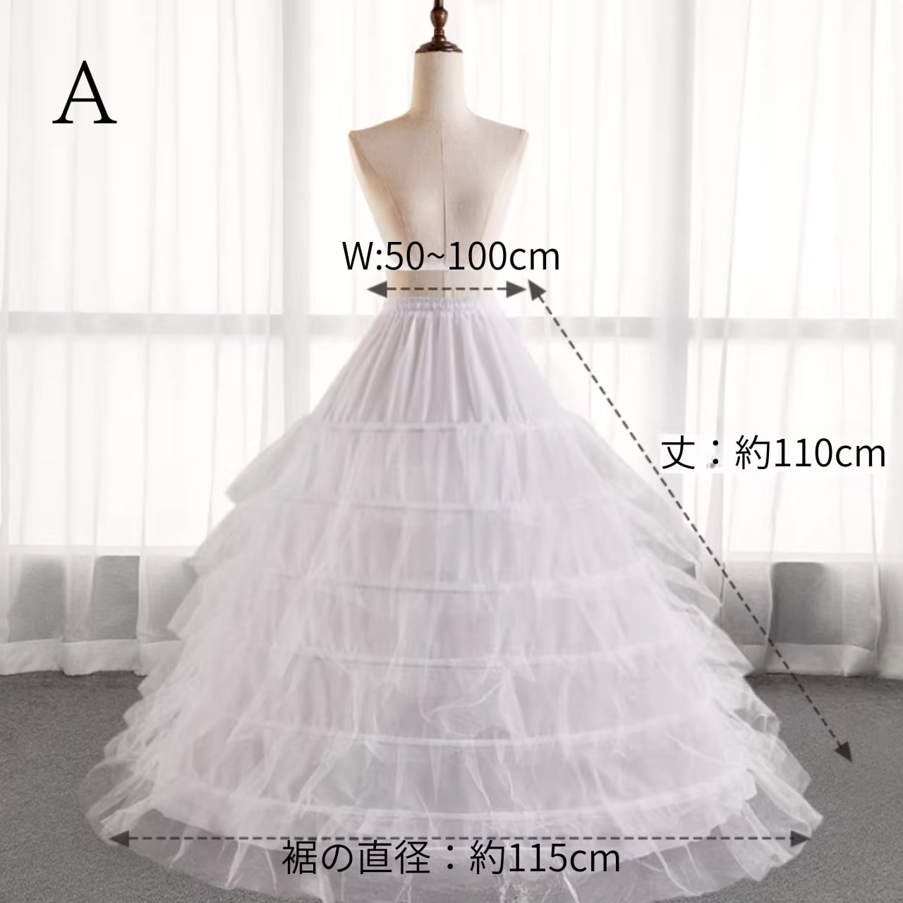 A ワイヤーリング6本 フリル6段 ウェスト:50cm〜100cm、長さ:110cm、裾の直径:約115cm