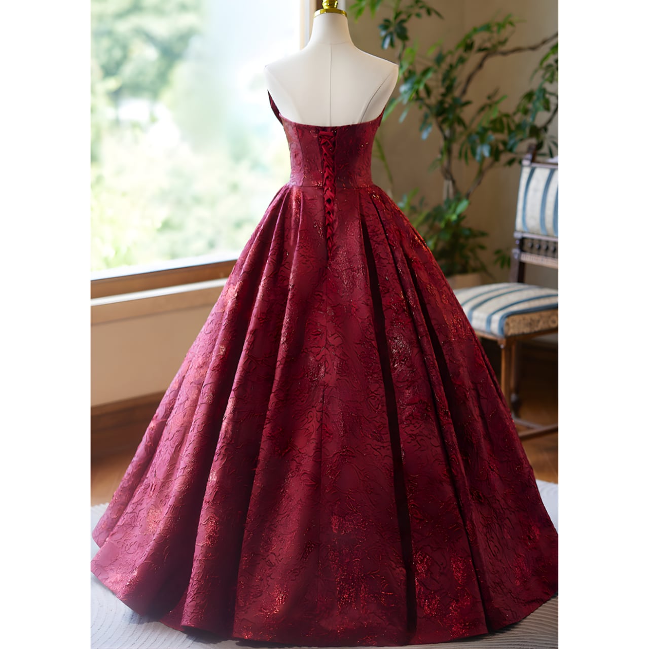 ☆背中編み上げタイプです。+2,000円でサイズオーダー、サイズお直し、背中ファスナータイプにご変更できます。