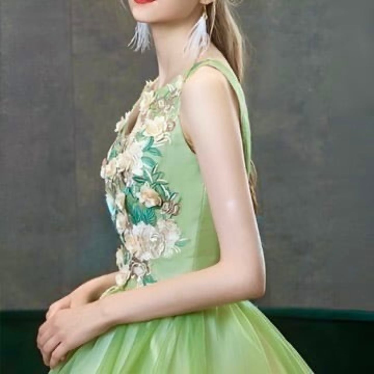 ☆背中編み上げタイプです。+2,000円でサイズオーダー、サイズお直し、背中ファスナータイプにご変更できます。